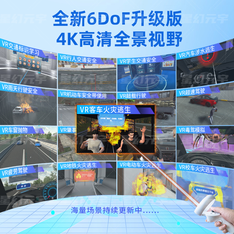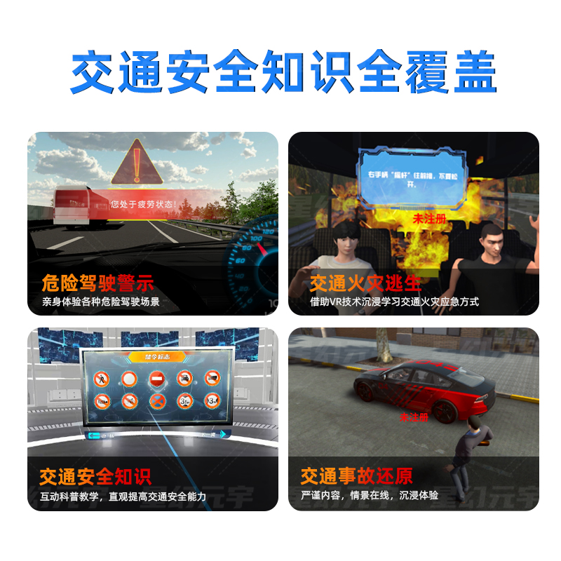 特殊天气与违规场景:包含 VR 雨天行驶安全、VR 超载驾驶体验,直观展现违规行为的危害;