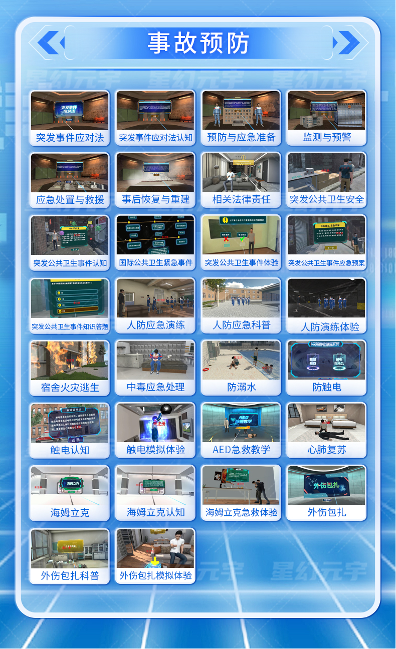 事故预防:聚焦防溺水(泳池 / 野外溺水自救)、防触电(电器漏电处置)、防中毒(燃气 / 食物中毒应对)等,通过场景模拟强化应急处理能力;