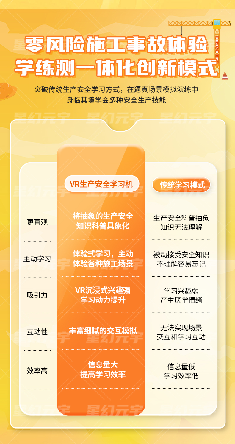 随着 VR 技术的成熟,其沉浸式、交互式特性为安全培训破局,VR 生产安全学习机应运而生。该设备专为生产施工领域设计,以虚拟仿真突破传统培训瓶颈,让员工在安全环境中 “亲历” 事故现场、锤炼安全技能,从根本上提升培训实效,为企业筑牢安全生产防线。
