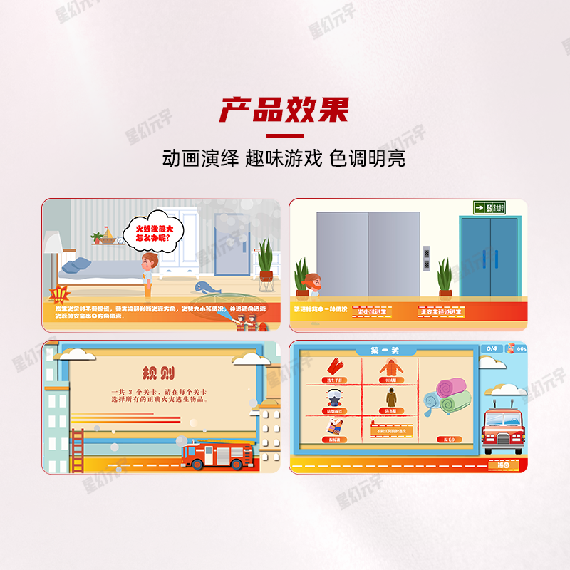 - 对多领域:适配学校、企业、社区、消防科普基地等不同场景的培训需求,提供趣味化、可复制的消防安全培训解决方案,丰富科普教育形式,提升培训实效。