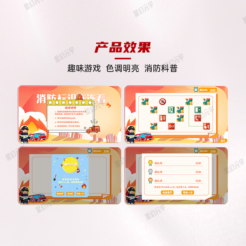 1. 游戏化设计,学习趣味性强:将消防标识科普融入“连连看”游戏,改变传统科普的枯燥感。通过闯关、计时、排名等游戏机制,充分调动体验者的参与热情,让公众在“玩游戏”的过程中主动学习,实现“寓教于乐”。