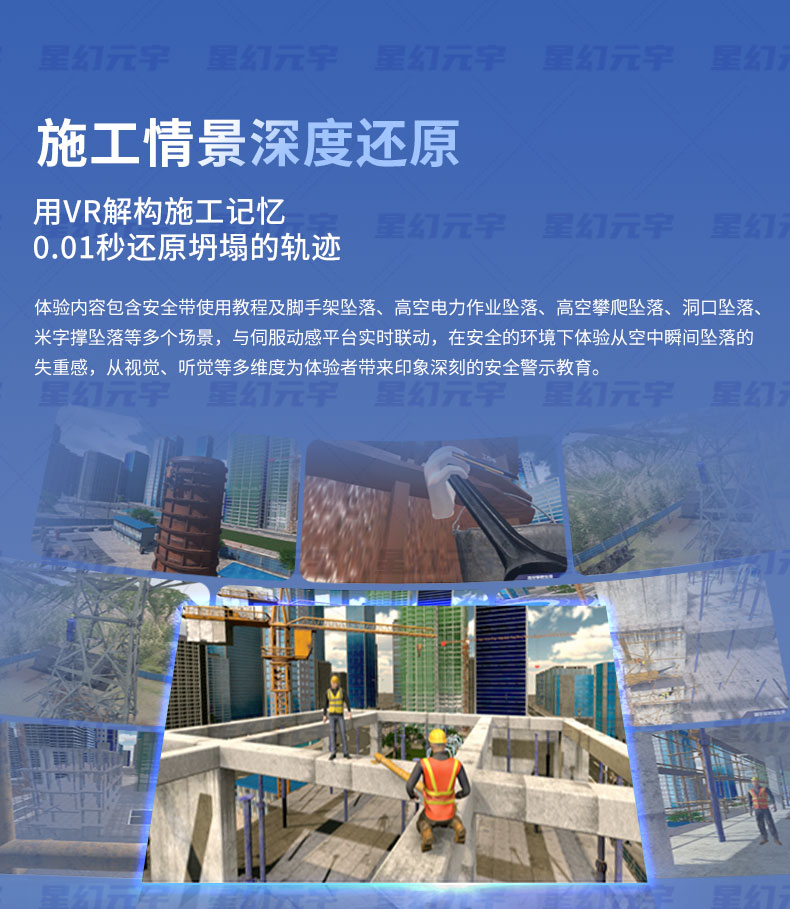 核心受众:高空作业一线从业者(建筑工人、电力检修员、高空清洁员、市政工程施工人员等),该群体直接面临高空坠落风险,需通过沉浸式体验建立安全操作意识,适配岗前安全培训、在岗定期复训、事故警示教育等场景,助力其熟练掌握安全带使用规范与风险规避技巧;