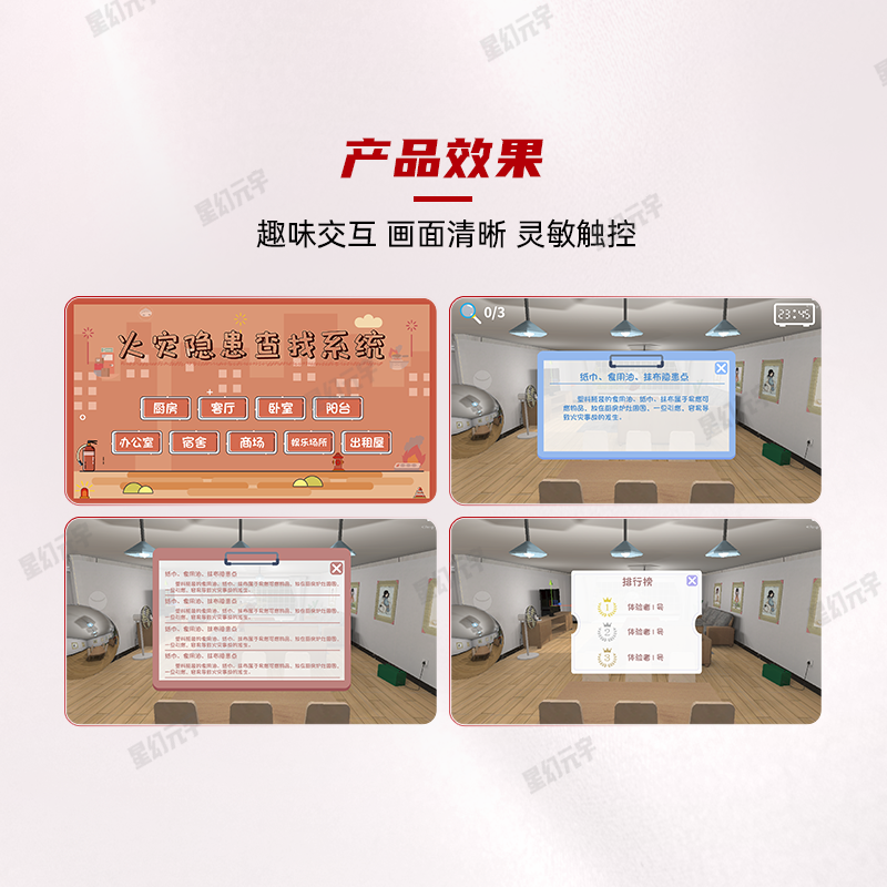 3、从 “短期记忆” 到 “长期习惯”:系统的场景都源于日常,体验者在虚拟空间学到的知识,能直接迁移到真实生活 —— 比如体验过 “超市隐患查找” 后,再去超市购物时,会下意识关注 “消防栓是否可用”“安全出口是否畅通”;体验过 “宿舍隐患查找” 后,回宿舍会主动检查 “插线板是否有破损”。让 “识别隐患” 变成一种本能,让安全习惯融入生活日常。