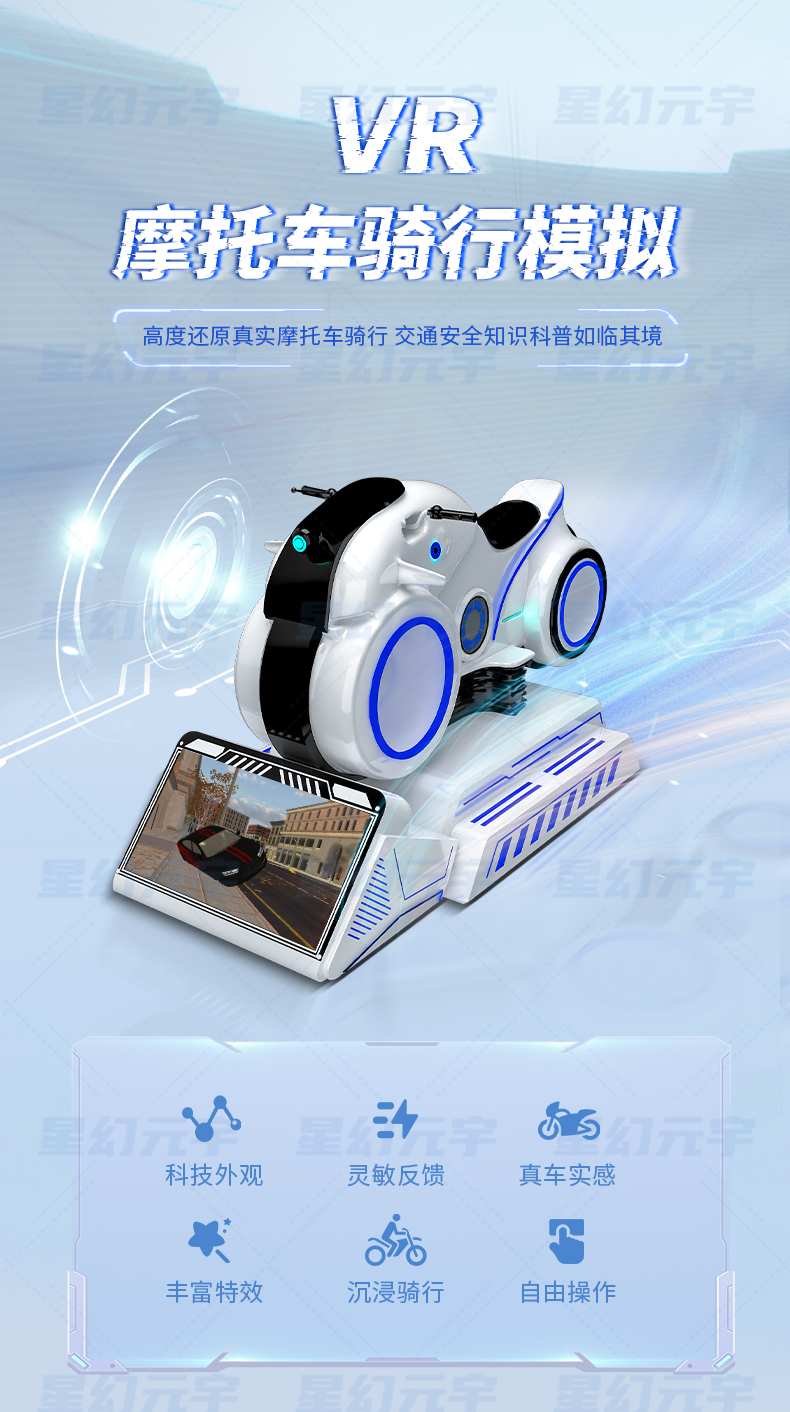 VR 摩托车骑行体验是一款聚焦交通安全教育的沉浸式科普产品,依托动态体感装置与交互操作系统,真实还原摩托车骑行全流程,通过视觉、听觉、触觉多维度融合,让用户在安全环境中体验危险骑行瞬间,强化安全骑行意识,适用于摩托车驾驶员培训、交通安全宣传、青少年安全教育等场景。