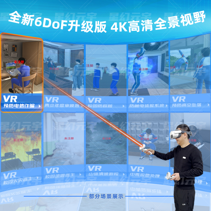 灵活适配功能:支持 VR 设备单独体验,也可通过大屏端用于集体科普,适配学校、社区、企业等不同场景。